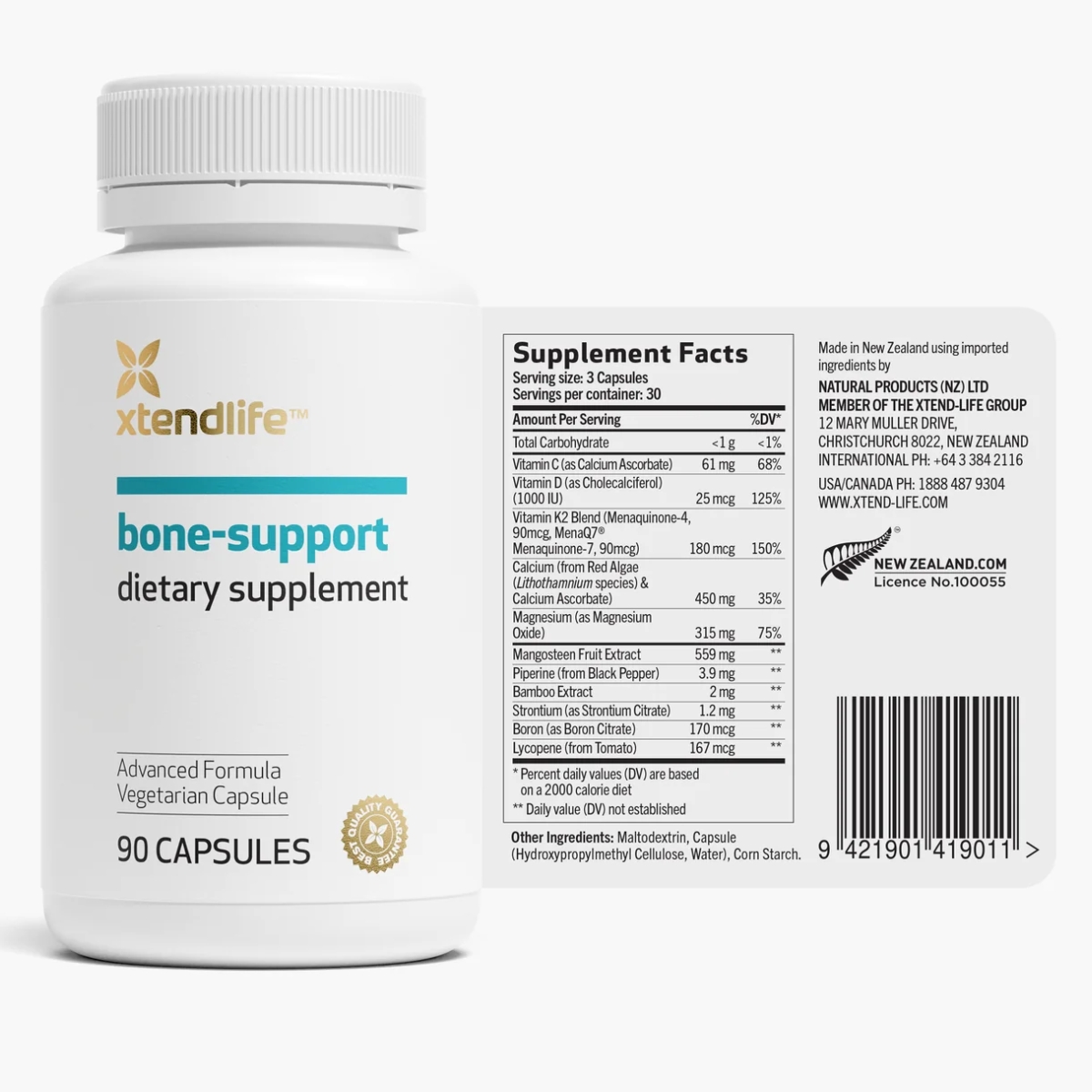 Bảng thành phần đầy đủ của Xtend-Life Bone-Support: